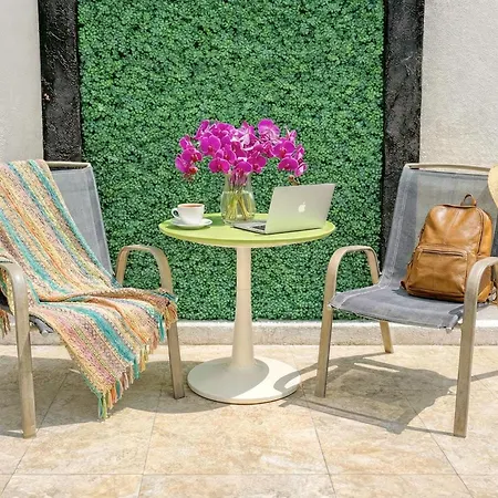 Ao se alojar no Spacious & Comfy Suite 2 Full Beds Steps To Beach Kitchen Ac Fast Wifi 4A Playa del Carmen de 45 m², os hóspedes podem relaxar no terraço a 17 minutos a pé do Ponta Esmeralda. Juntamente com depósito de bagagem, este apartamento também tem vista pátio interior.